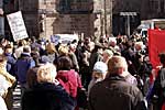 Am Samstag zogen wieder tausende Nürnberger nach einer Kundgebung vor der Lorenzkirche durch die Altstatt und über Plärrer und Bahnhof zum Amerika-Haus. Dort machten sie deutlich, wer an diesem Krieg schuld sei: George Bush. Sie verurteilten seinen Krieg aufs schärfste und forderten den sofortigen Stop. |